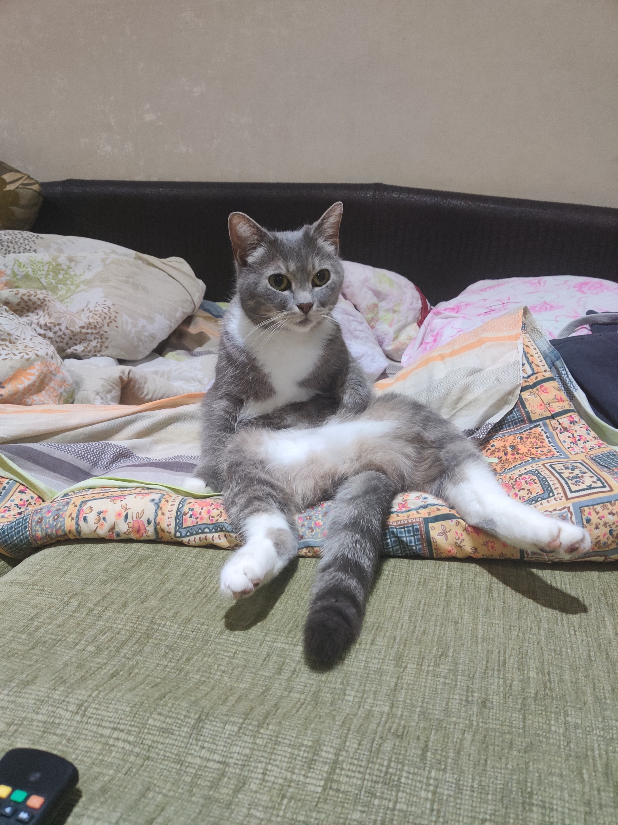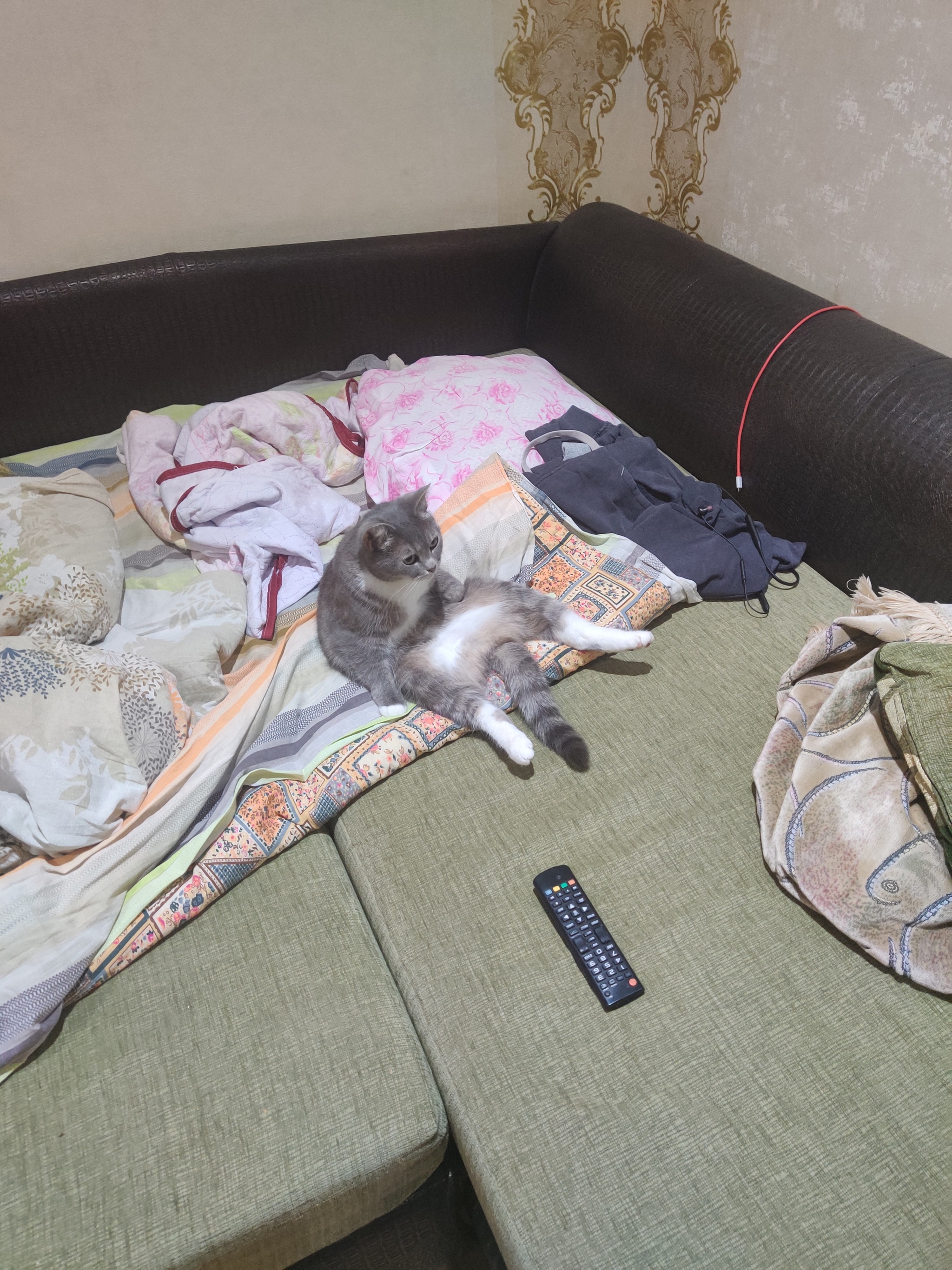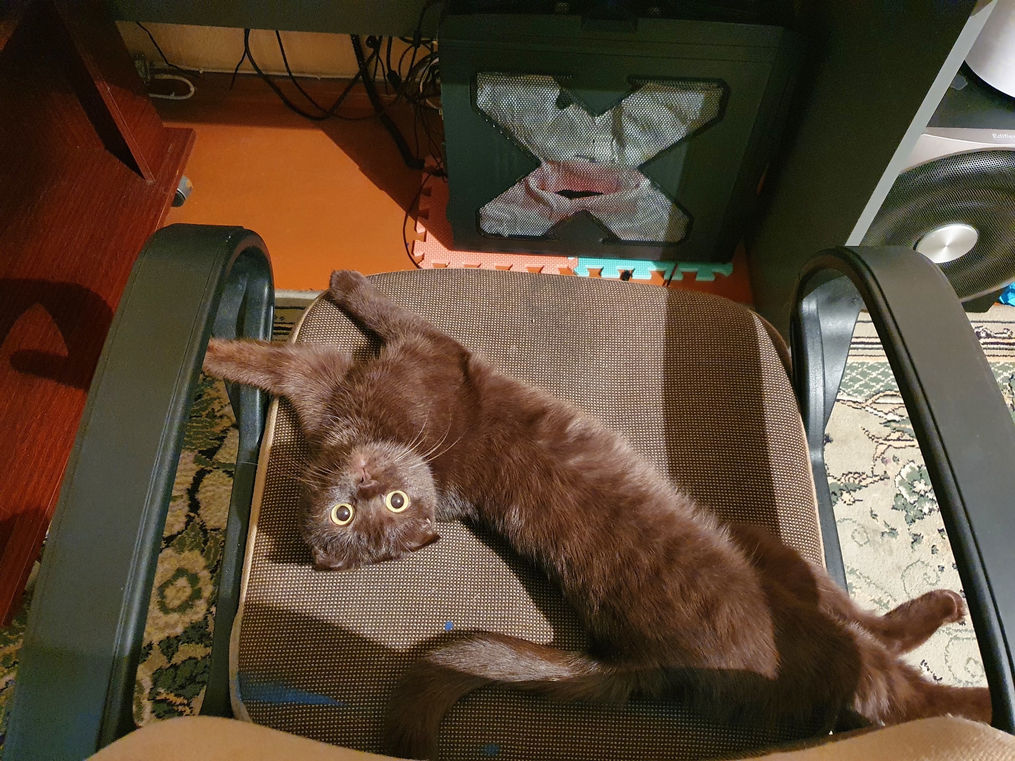 А это моя, после тяжёлого дня пытается прийти в себя у телека.
