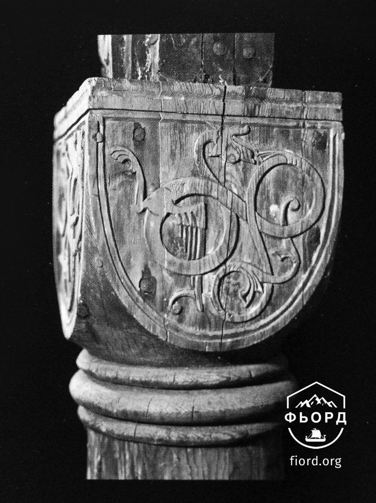 Столб из церкви Урнес, Норвегия. Смесь Романского стиля и мотивов стиля Урнес