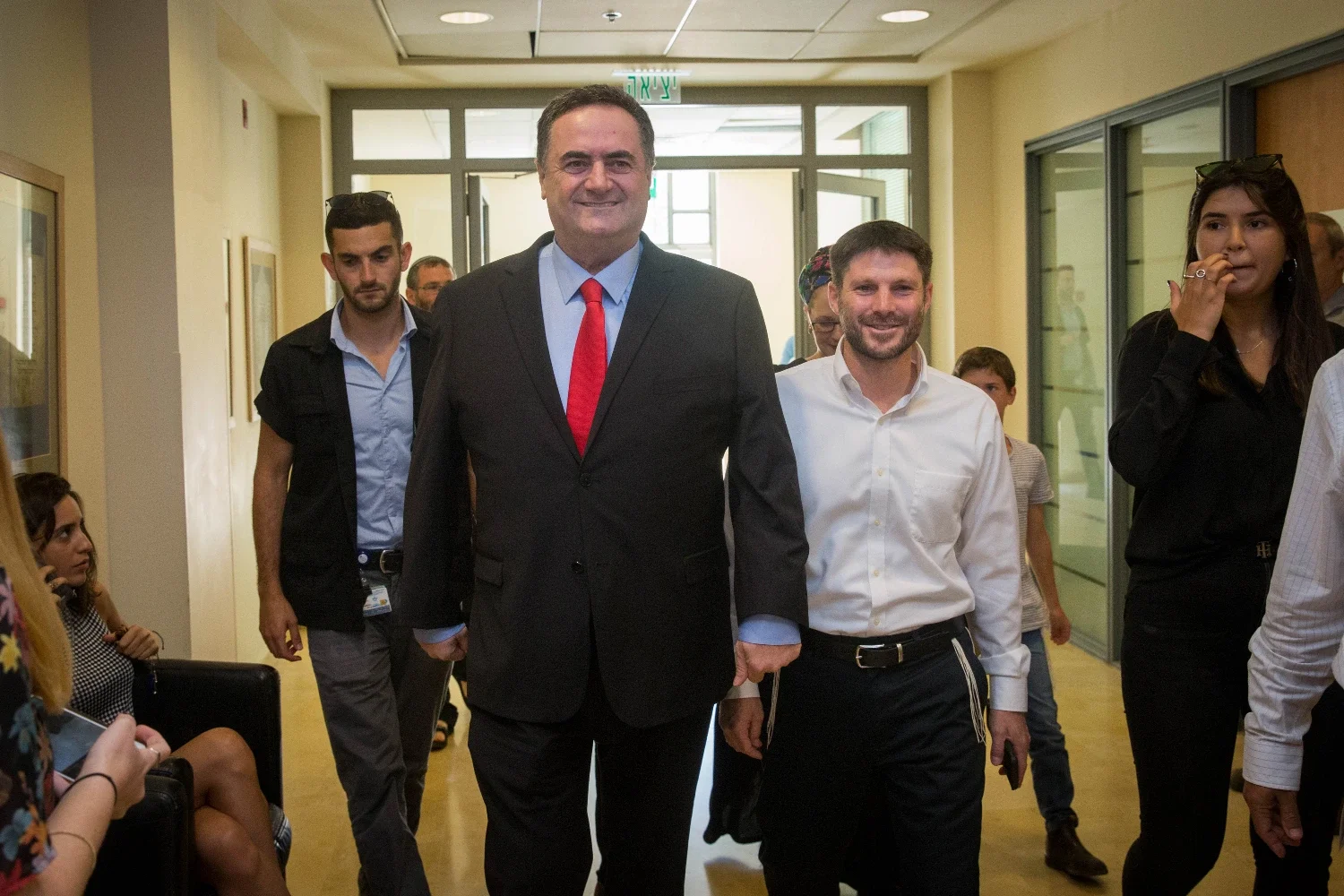 Noam Revkin Fenton/Flash90 [С красным галстуком — Кац, мелкий шибздик в белой рубашке справа от него — Смотрич]