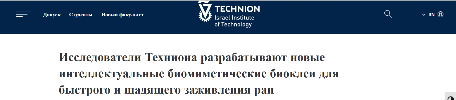 22.10.2025г. Ученые из Израильского технологического института "Технион" разработали инновационный биологический клей, который может полностью изменить подход к лечению ран и проведению хирургических операций.