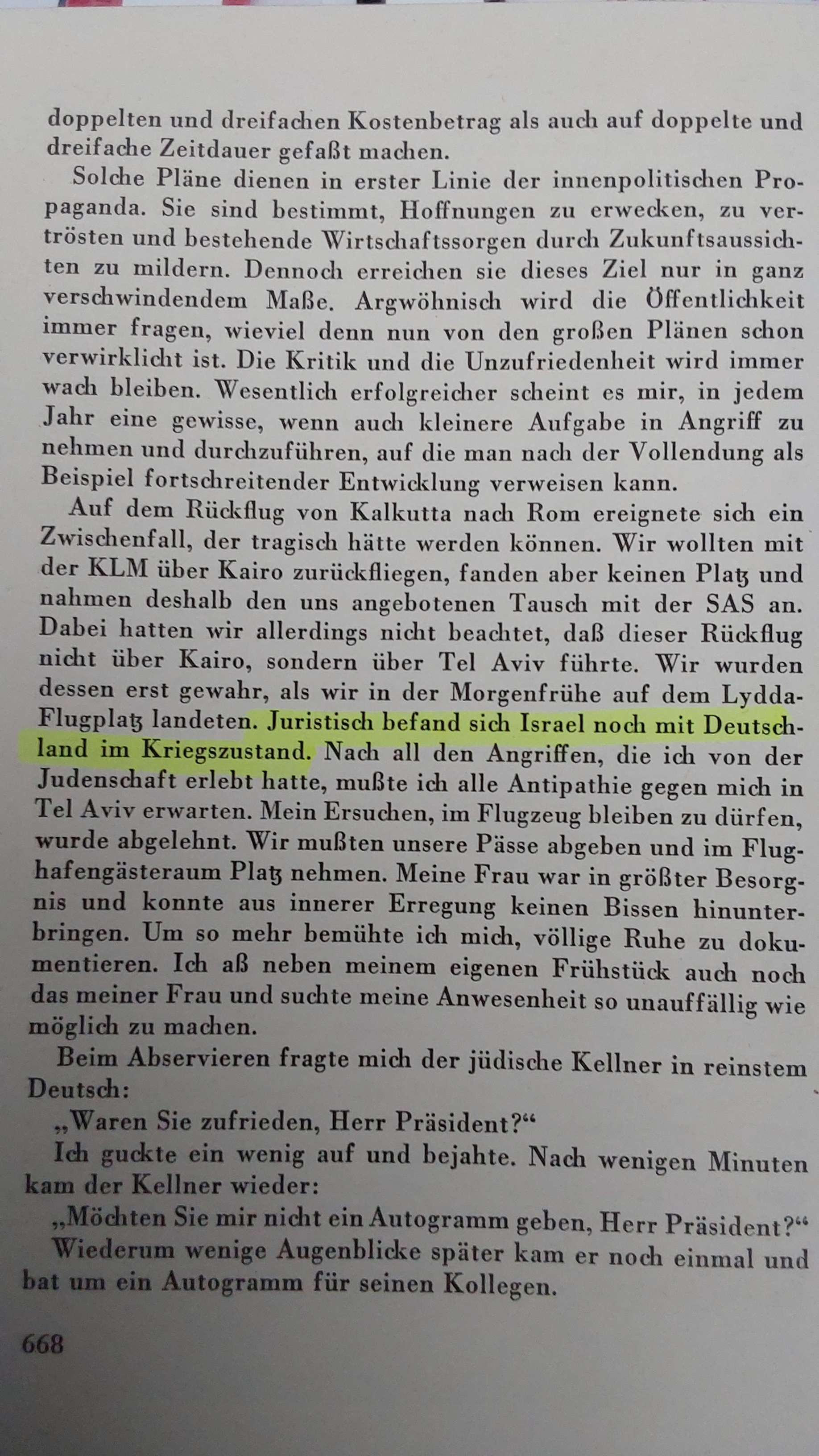 Вот фрагмент из мемуаров Ялмара Шахта о его возвращении из Индонезии осенью 1951 года. Его чудом тогда не сцапали в аэропорту Тель-Авива.