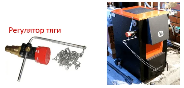 это вон та палка и цепочка, принцип прост, когда температура высокая, металлический штырь опускается, дверка поддувала закрывается, когда температура падает штырь поднимается и поддувало открывается. Штука примитивная, но клевая, без нее я бы бегала постоянно "откройте мне жарко, закройте мне дует".