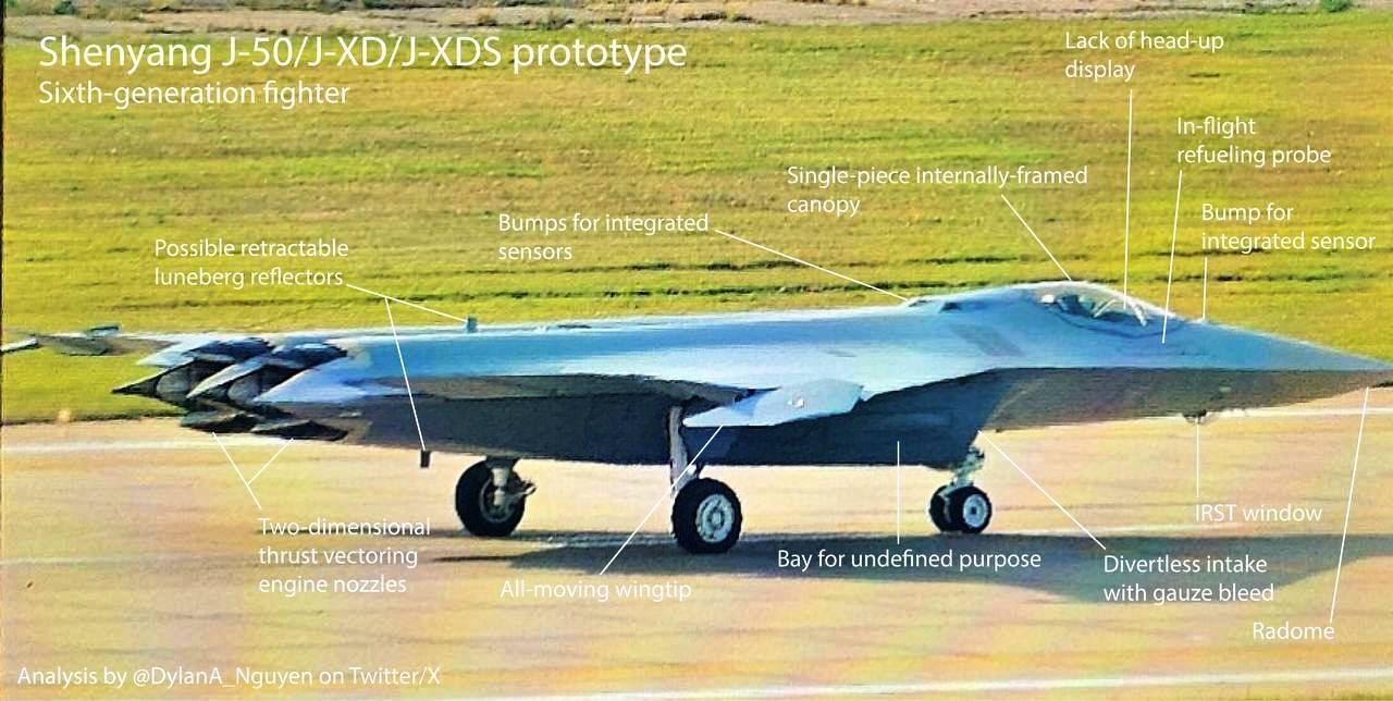 Что характерно, это не единственный аппарат 6 поколения, разрабатываемый в Китае. Одновременно они (правда другая корпорация) разрабатывают более крупный, вероятно, ударный аппарат J-36 с дельтавидным крылом и заметно более крупными отсеками и, вероятнее всего, значительно бОльшей дальностью в ущерб маневренным характеристикам. По конфигурации шасси я бы оценил мтом в порядка 40 или чуть больше тонн.