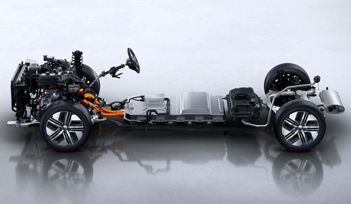 Основной тяговый электродвигатель выдает 218 л.с. и 350 Нм, мощность второго мотора — 136 л.с., но он в основном работает в роли генератора и лишь при необходимости дает тягу на передние колеса. Пиковая отдача гибридной системы — 421 л.с. и 745 Нм. Под полом салона установлена тяговая батарея емкостью 44,6 кВт·ч, полного заряда должно хватить на 200 км пробега, а в гибридном режиме минивэн одолеет до 1200 км.