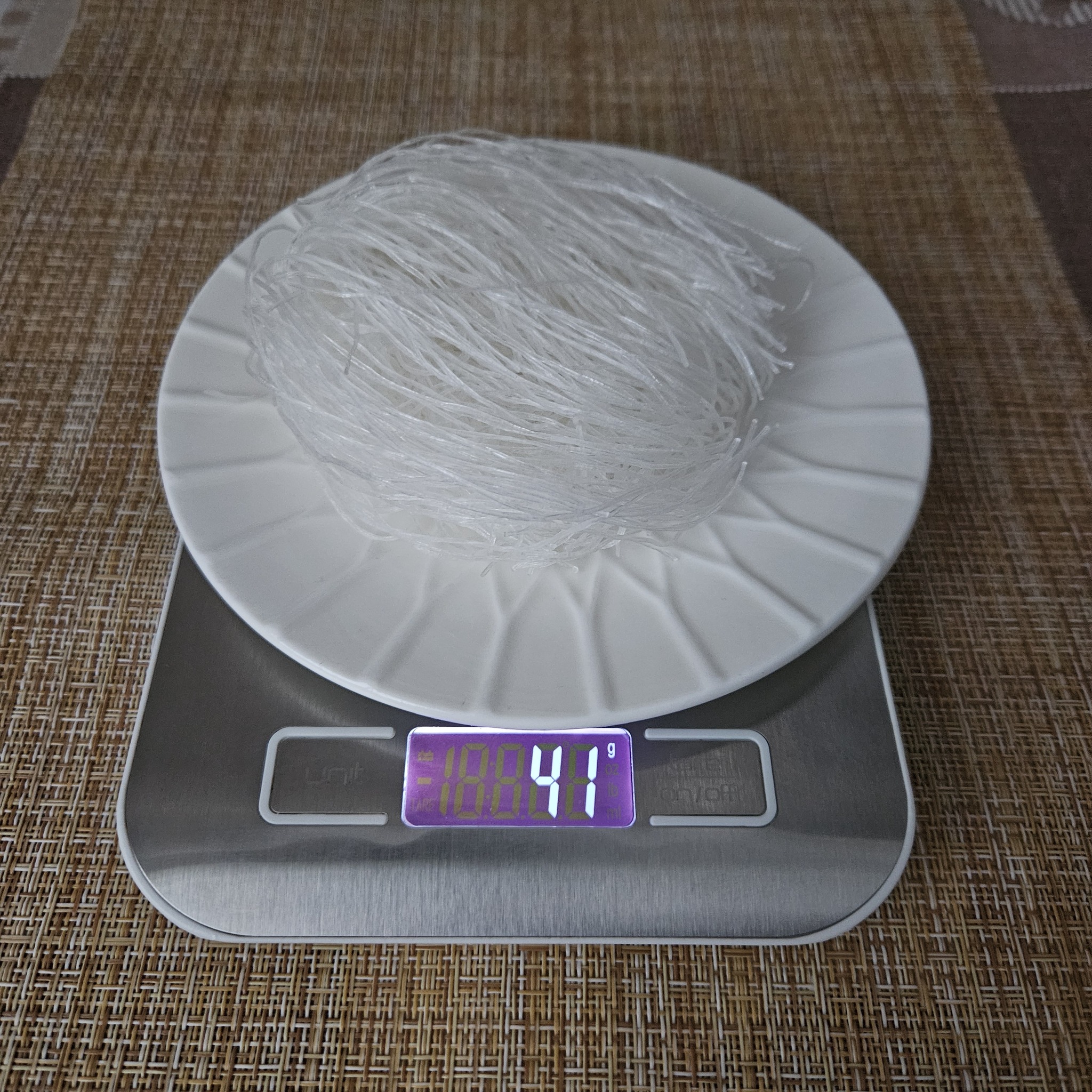Лапша – фунчоза. Белая, в виде небольшого моточка. Масса около 40 граммов.