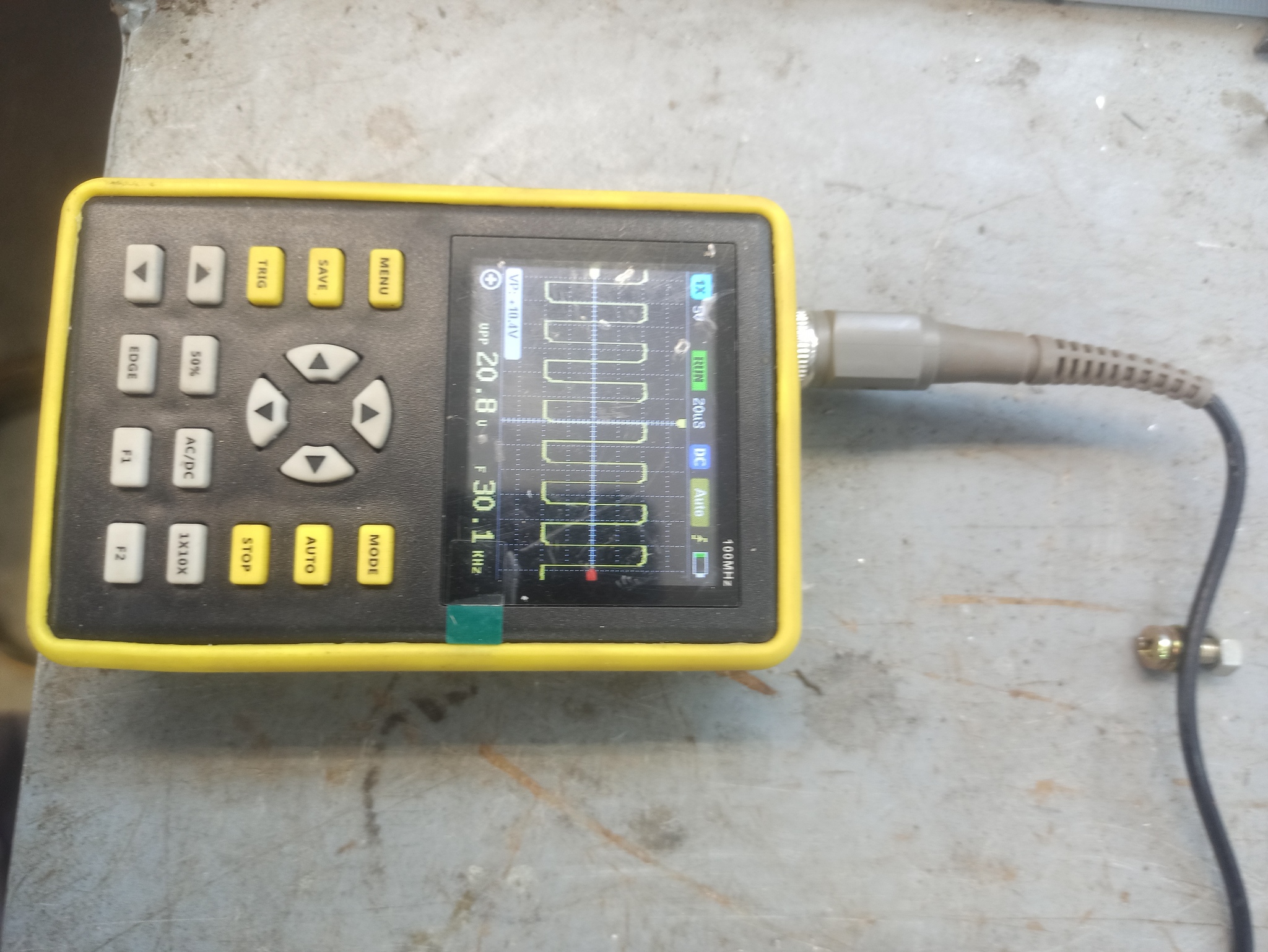 С сигналами всё хорошо. Следующий шаг это подключаем выходные диоды. И снова включаем пробуем запустить процесс сварки замкнув разъём кнопки на панели. Осциллятор работает а это значит что силовая часть у нас работает.