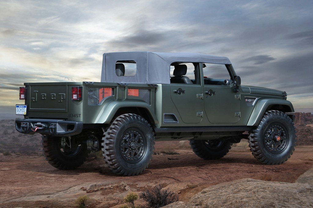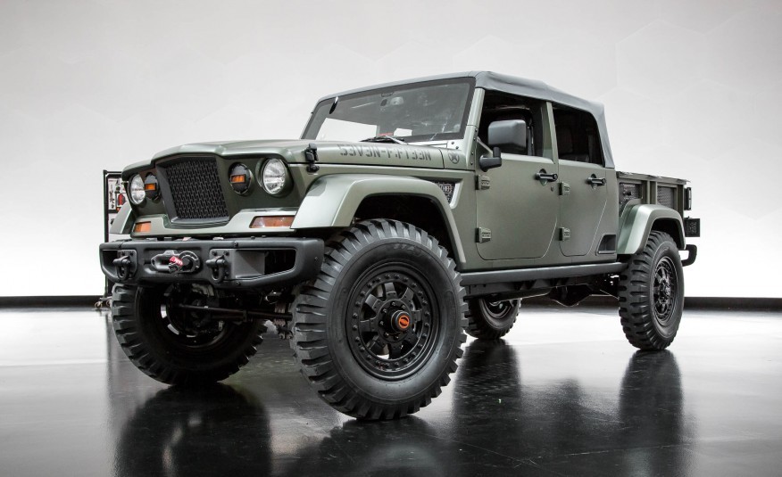 Автомобиль построен на базе открытого серийного Wrangler Unlimited с уникальной внешностью. Пикап получил стальные бамперы спереди и сзади, 20-дюймовые колеса с военными шинами, четырехдюймовый лифт-кит, мосты Dana 60 и лебедки спереди и сзади. Под капотом внедорожника находится 3,6-литровый V6 Pentastar, который работает вместе с шестиступенчатым «автоматом».