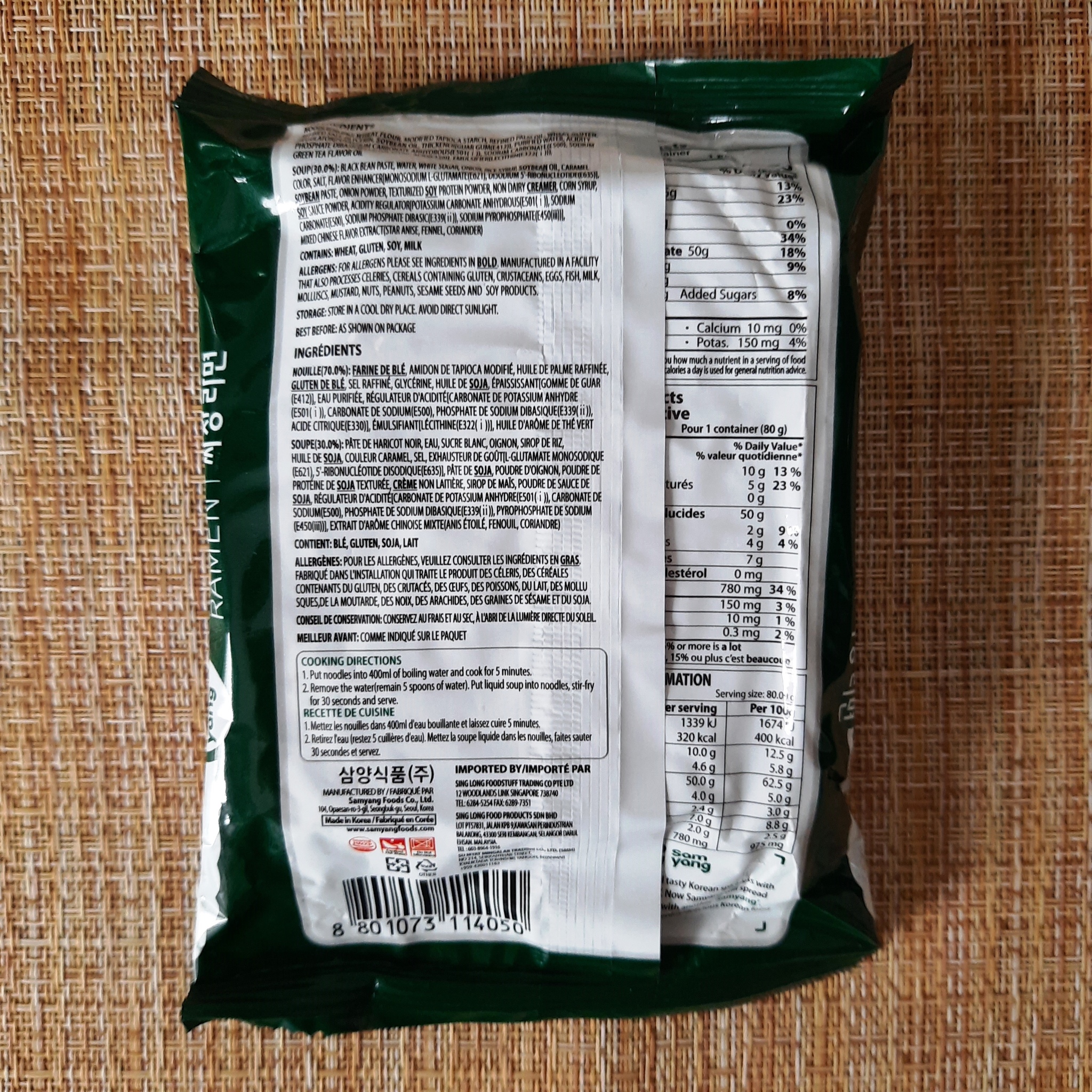 По просьбам комментаторов выкладываю данные о калорийности и пищевой ценности. Обращаю внимание на то, что калорийность составляет 320 калорий, что, в целом, не очень много для лапши.
