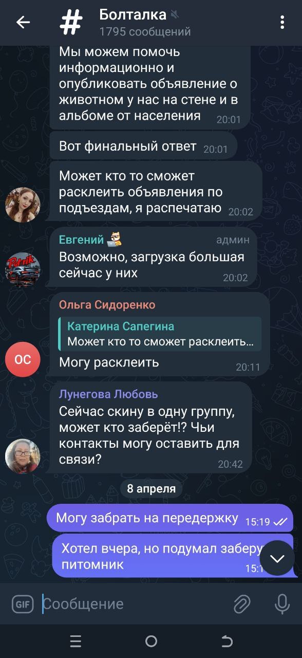 Когда увидел это фото расстаял, стало сильно жалко .В чате дома пошёл разговор о поиске хозяев, о том что может забрать питомник. Решил подождать до завтра. Позже сказали что питомник может пристроить но нужна передержка.
