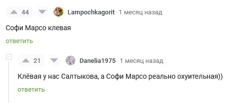 Как раз Марсо это чуть ли не одна из немногих, чистокровная француженка во французском кино. ) Её родословную на французских сайтах исследовали чуть ли не до середины 19 века. Парижские пролетарии там сплошные, корни откуда-то из провинции Мен, кажется. Мать на окситанку похожа, как Мирей Матье. Арабка это Аджани. У Котийар по матери арабские корни, у Эммануэль Беар еврейские, у Виржини Ледуайен испанские, у Влади и Демонжо –русские.