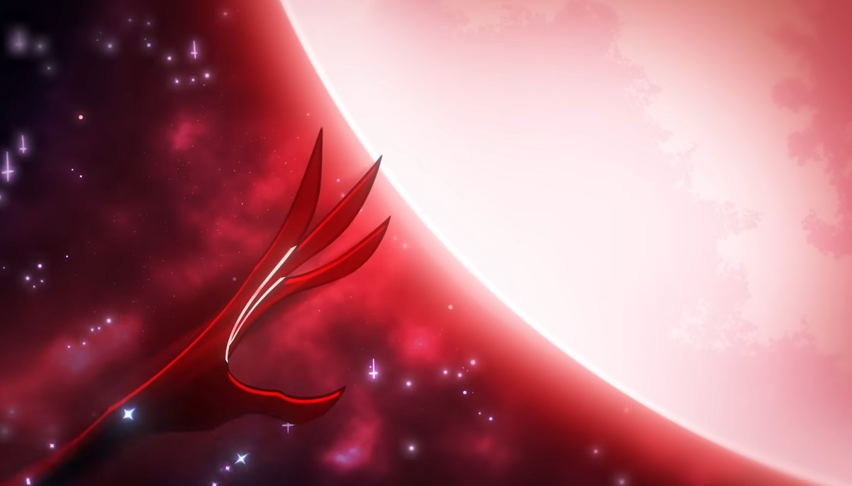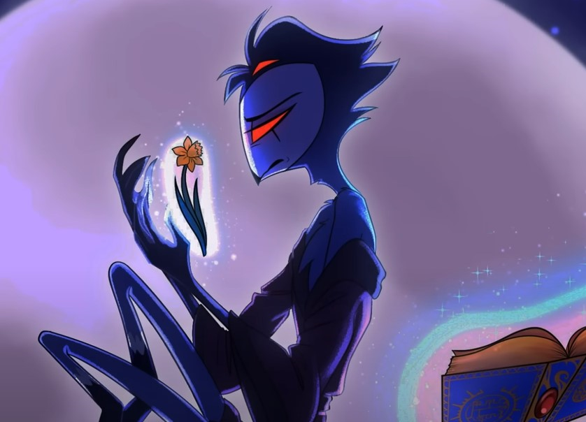 Далее нам постепенно показывают великолепный арт, на котором Столас парит на фоне полной луны печально и немного с тревогой глядя в сложенные ладони, рядом парит гримуар. На моменте «Let me hold you…» в его руках появляется цветок. Символично, ведь это желтый нарцисс. На языке цветов он указывает на признание в чувствах, буквально говорит «ты мой свет», а также указывает на чувства без ответа. Этим цветком Столас как бы сообщает о своих чувствах Блицу. В распевке поется «позволь мне обнять тебя, прижать к себе и быть рядом, я так хочу слышать твой голос…» что также отсылает нас к значению цветка.