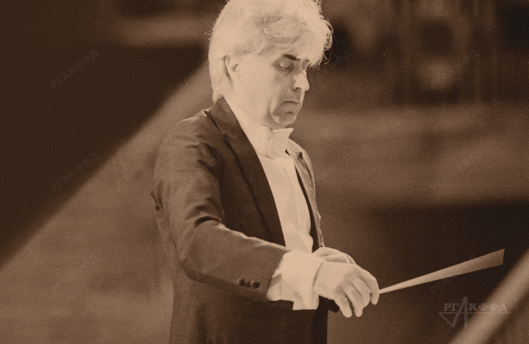 Главный дирижёр и художественный руководитель Академического симфонического оркестра Московской филармонии Д.Г. Китаенко за дирижёрским пультом / Москва, 1985-1990 гг. / Фотограф: А.Н. Агеев / РГАКФФД. Арх.№ 0-393898