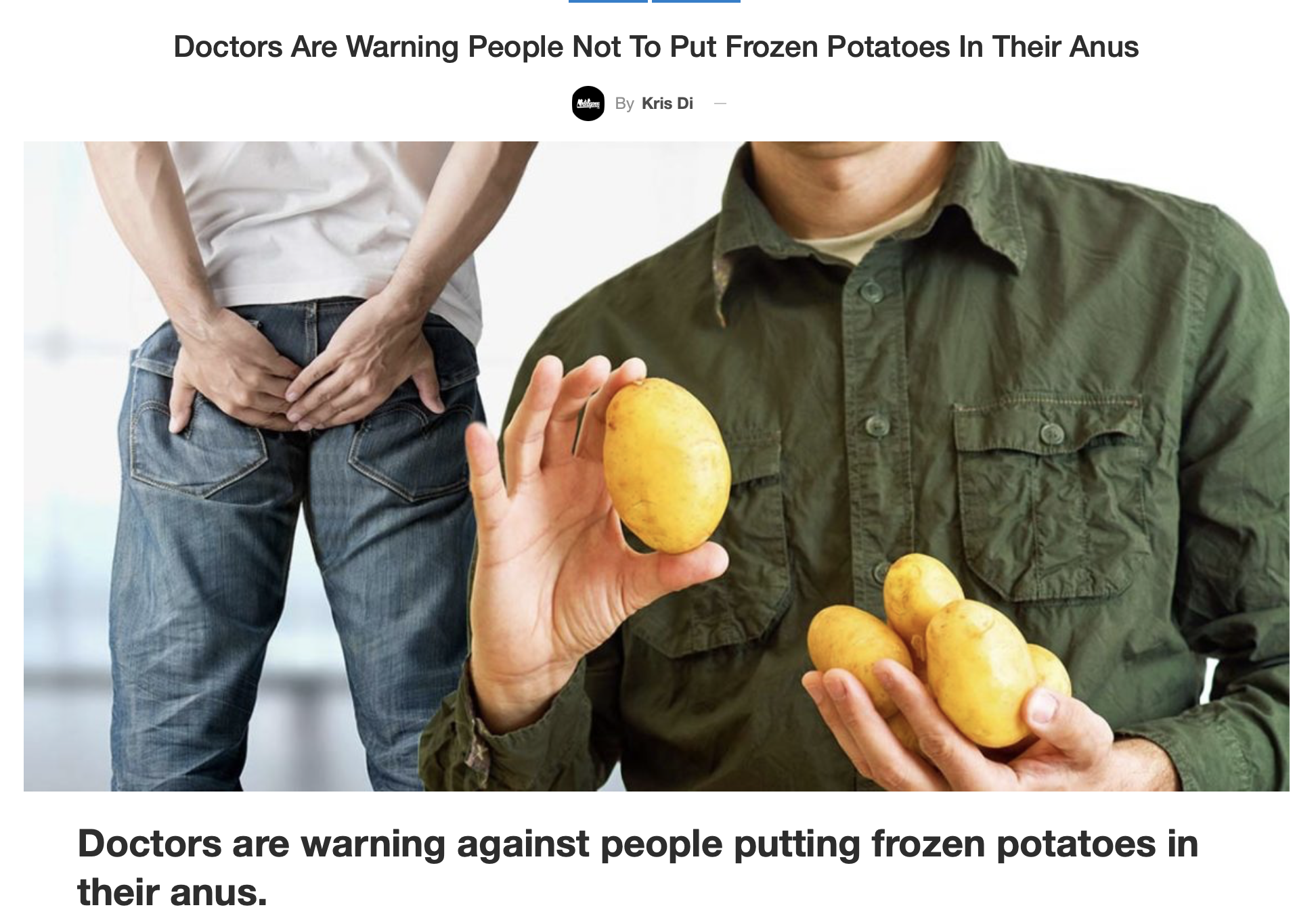 7 Gauree К новостям здравоохранения 7 месяцев назад Источник Доктор предупреждает людей не использовать замороженный картофель для ануса Здоровье Юмор Картофель Совет ЗОЖ Скриншот 3 1 1 1 Ещё 0