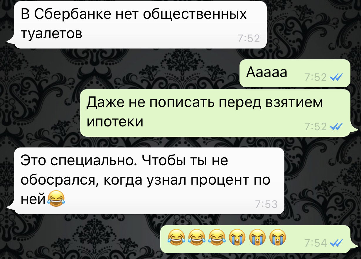 angeledis 6 лет назад К посту об экономии Сбером бумажных полотенец в туалетах https://pikabu.ru/story/yekonomiya_dolzhna_byit_yekonomnoy_6... [моё] Сбербанк Экономия Переписка Ипотека Туалет Гигиена