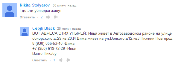 Видео мгновенно вызвало волну возмущения среди пользователей социальной сети. Желающих совершить самосуд над подростками набралось порядка нескольких сотен человек. Однако связаться со школьниками не получилось: испугавшись такого резонанса, герой видеоролика удалил свою страницу в Сети. Тем, кто успел связаться с Дмитрием А., он ответил, что избил старушку за грубые слова в его адрес.". Как ТАКОЕ выросло? О_о
