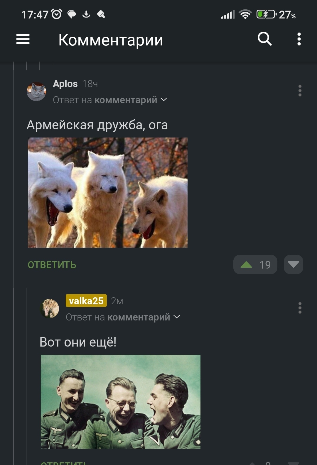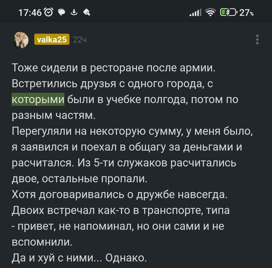 1 valka25 1 год назад К посту про невозврат долгов "Про***" (Коменты) Про *** @Aplos, ты в телевизоре. [моё] Комментарии на Пикабу Служака Долг Длиннопост Скриншот Ещё 0