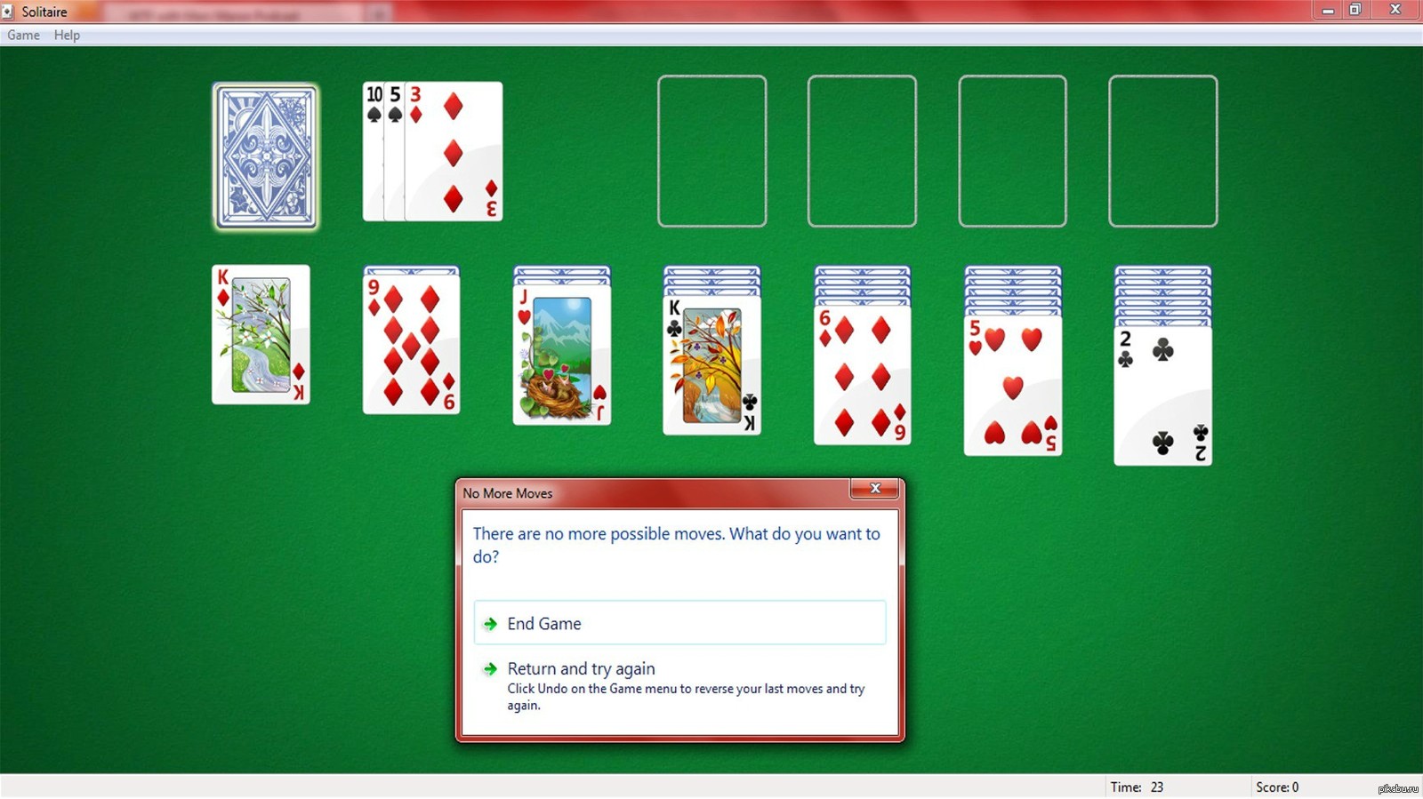 4 Fitulya К такому жизнь меня не готовила. 11 лет назад Нет доступных ходов в самом начале раздачи. Картинки Скриншот Солитер Жизнь Жизньболь