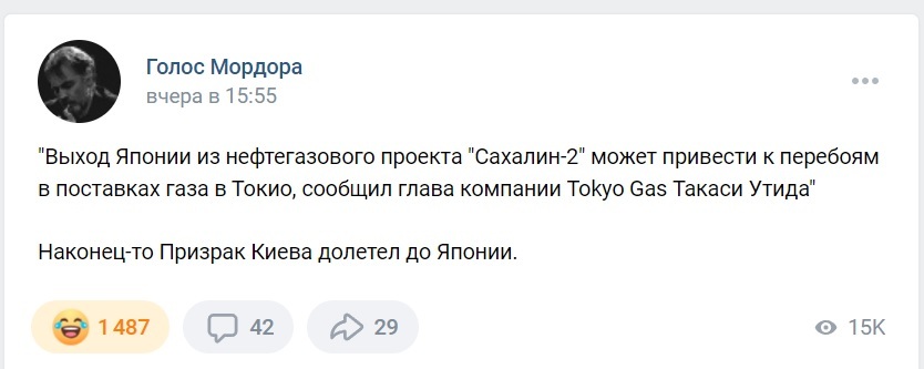 Качают наш газ и одновременно на острова претендуют. Добрые мы слишком