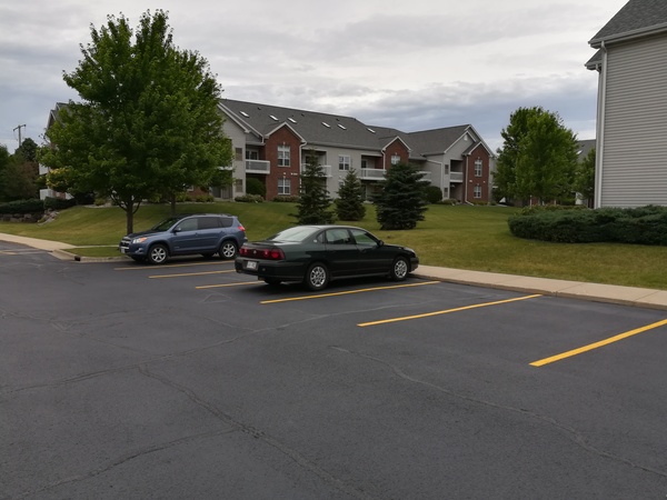 В моем случае, на одни апартаменты предоставляется одно бесплатное место на парковке перед домом и одно место в подземном паркинге за 30 баксов в месяц. В подземном паркинге у каждого свое выделенное место, на открытом паркинге можно занимать любое свободное место.