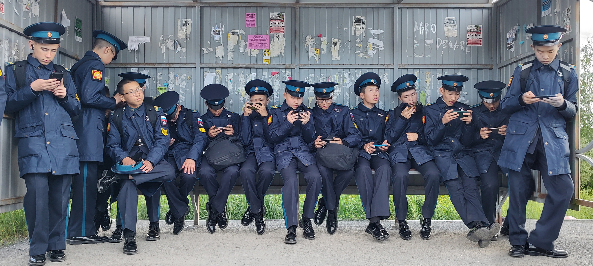По команде: "Убрать телефоны!" все убрали телефоны и зашли в автобус.