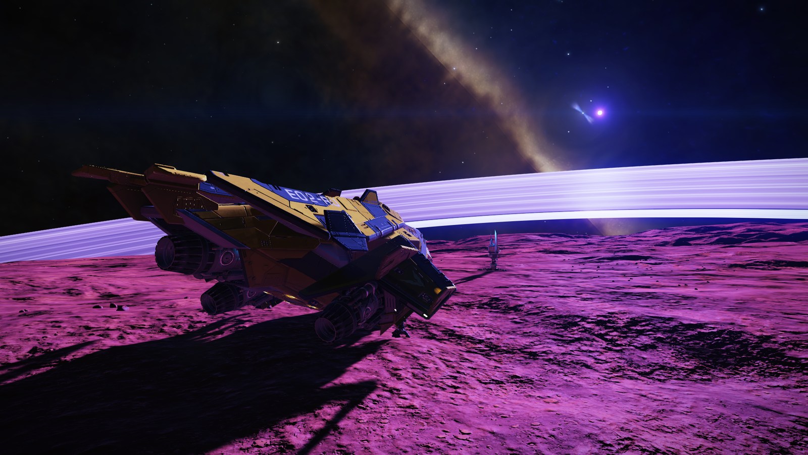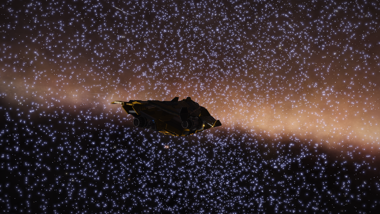 Всем о7, командиры. Давно в комментах обещал накинуть красивых скриншотов мира элитки, сделанных в ходе полётов к центру галактики, к Beagle Point и просто вне обитаемого "пузыря". Скрины всё копились и копились. Думаю, пора бы и выложить, отобрав самые сочные красоты Млечного пути) Первая партия скринов с путешествий на таком замечательном корабле, как DBE (Diamondback Explorer) - пожалуй, лучший среди дальнобойных исследователей для тех, кто пока не заработал на Анаконду за его прыжок или, скорее, Прыжок! На момент путешествия к центру он составлял 57 световых лет с инженером только на FSD.