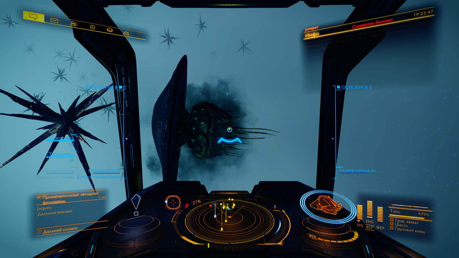 Благополучно пролетев больше 22 тысяч световых лет, очутился в Колонии. Колония представляет из себя своеобразный мини-пузырь, в котором насчитывается пусть и не несколько тысяч населенных систем, а буквально несколько десятков. Одной из таких систем, кстати, является система Мрия, где на одной из планет имеется небольшой планетарный порт имени Тараса Шевченко) Однако больше меня заинтересовало большое количество аномальных зон в системах. С косможивностью и красивыми кристаллами в точках Лагранжа)