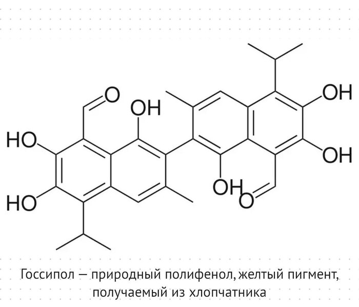 Немного истории. В провинции Цзянси (Китай) было выявлено большое количество бесплодных мужчин. Исследования доказали, что причина — в хлопковом масле, которое там не подвергали достаточной очистке. В масле сохранялся госсипол. После открытия феномена это вещество стало первым претендентом на роль мужского контрацептива. Но вскоре от такого противозачаточного отказались, хотя выработку сперматозоидов он отлично подавлял.