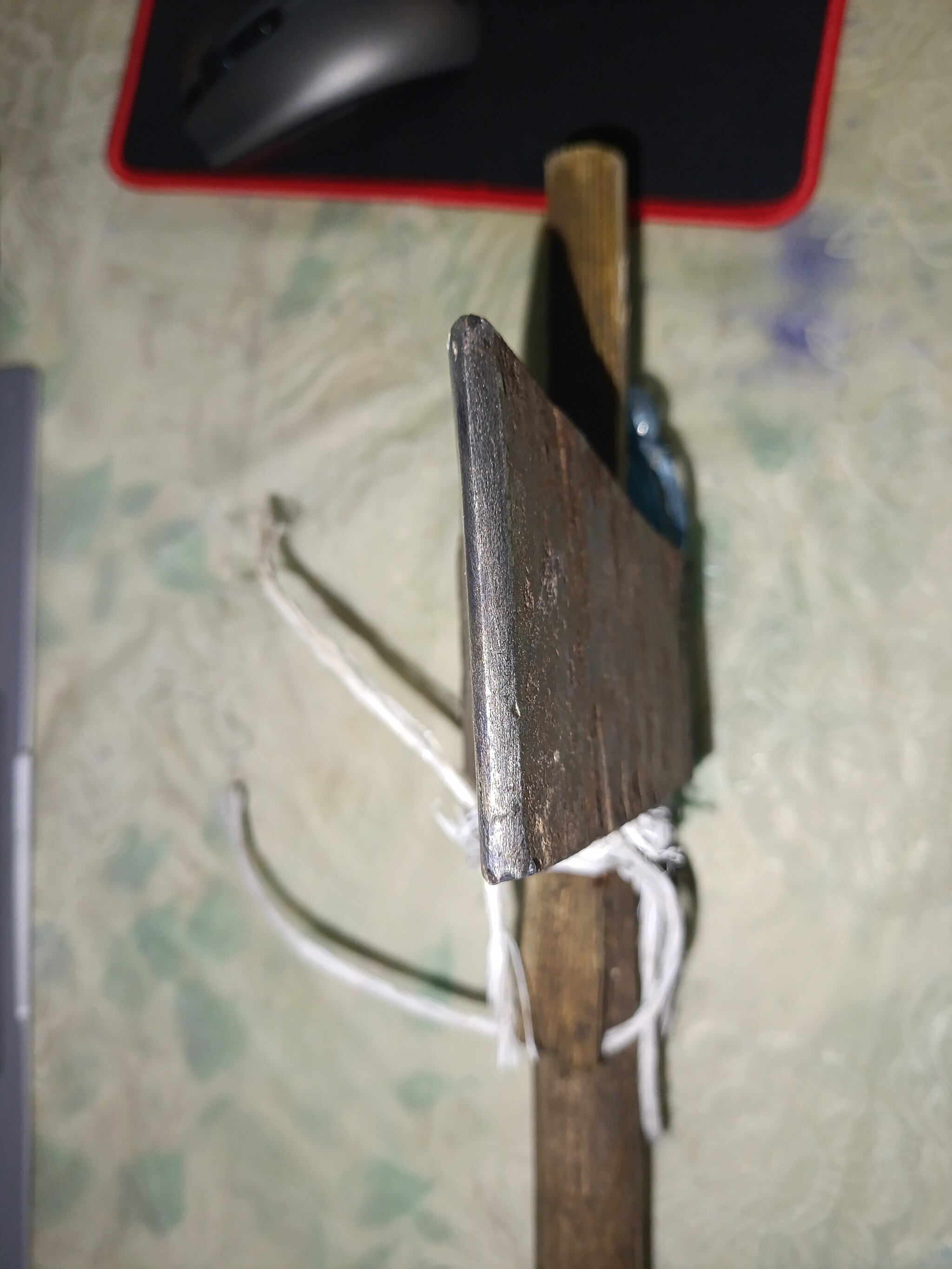 Твои мышцы не позволят довести это дело до конца, т.к. масса топора и габарит намного больше массы бритвы, а движения и скорость этих движений при "правке" требуют определенной недюжинной сноровки)))