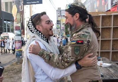 Мерц плачет на открытии синагоги, надев еврейскую кипу