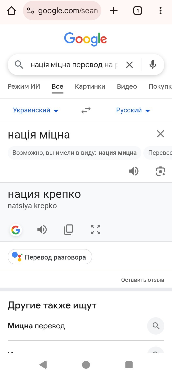 Это то же не все ТС, смотри, гугл переводчик считает, что они даже на мове не правильно написали, переводчик считает что "И" должна быть обычная. Ну а, лозунг - "нация крепко", это, простите, блять, паноптикум.