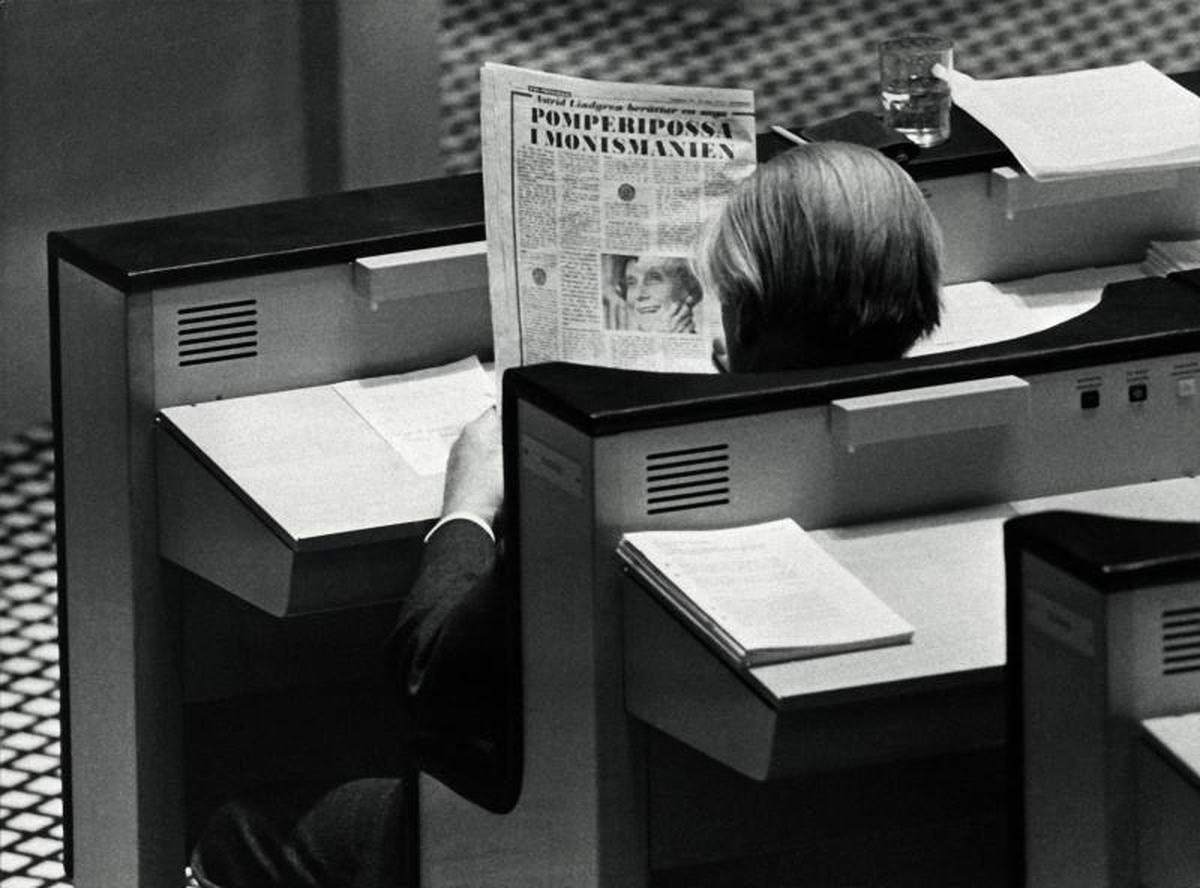 В 1970-е годы Астрид участвует в общественных дебатах, пытается переубеждать скинхедов и ведет колонку в газете «Экспрессен». В 1976 году, заполняя декларацию о налогах, она обнаруживает, что ее налоги составляют 102 % от доходов. Тогда Астрид сочиняет свою знаменитую сатирическую сказку «Помперипосса из Монисмании», в которой высмеивает налоговую политику Швеции. Сказку опубликовала «Экспрессен», чем вызвала огромный резонанс по всей стране. Министр финансов Гуннар Стрэнг был глубоко возмущен, и это положило начало дискуссии о реформах шведской налоговой системы.