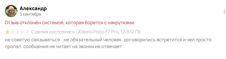 АВИТО!!! ВАША СИСТЕМА ПРОВЕРКИ ОТЗЫВОВ - ГАВНО! ОНА НЕ РАБОТАЕТ! СОВСЕМ! ЭТО ПОЗОР ВЫДАВАТЬ В ПРОДАКШН ТАКУЮ ЛАЖУ.