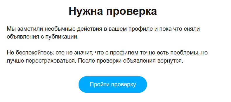 Интересная история приключилась у меня с @Avito, . Жил я себе, не тужил, изредка покупал что-то на авито, реже продавал. Профиль старый, лет уж 10 наверное, привязан к телефону и почте. И вот в один прекрасный, солнечный день, пытаюсь я зайти в профиль, в машинки потыркать, а мне говорят- нельзя, пройди ка проверку, дружище, а то мы что-то заподозрили: