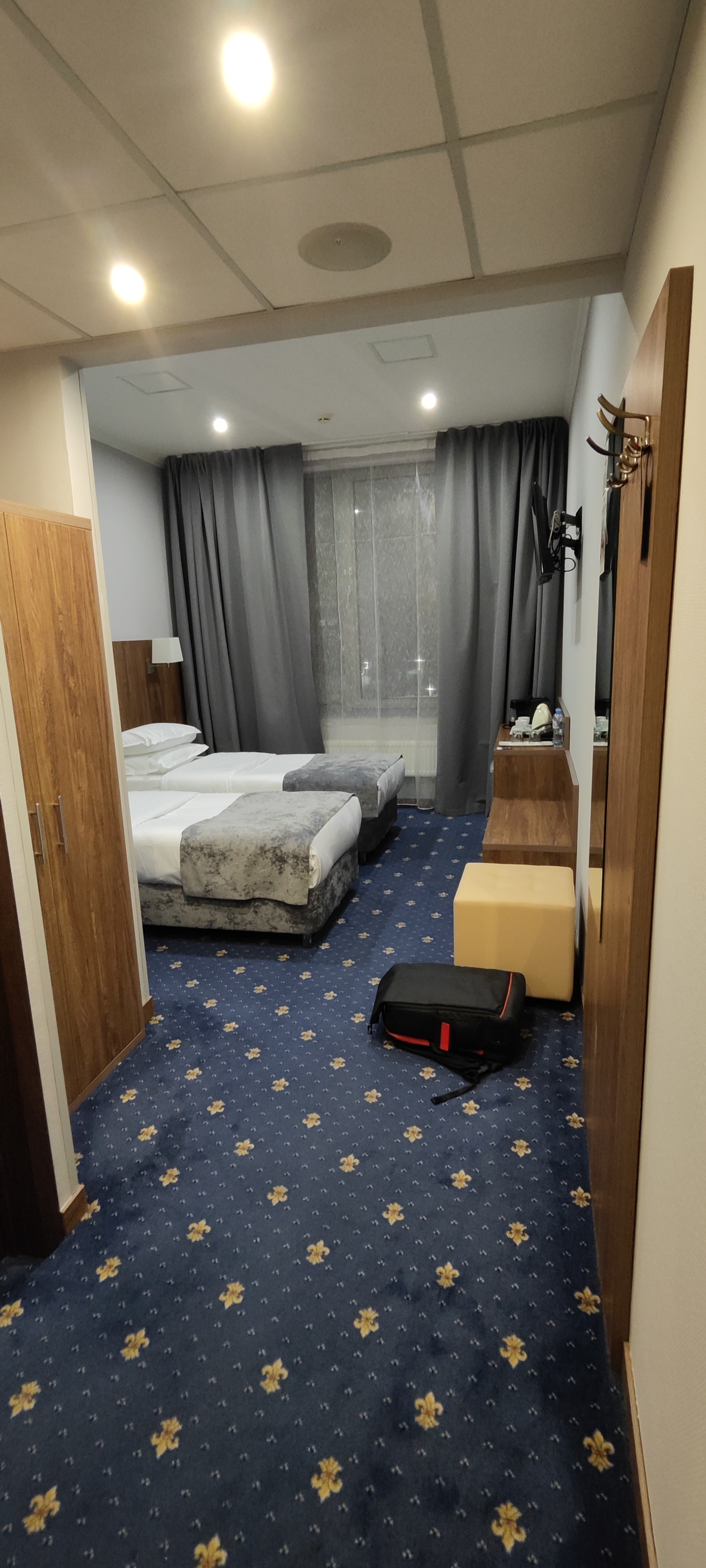 Единственный нюанс, селят по двое, так что еще один бедолага спал на соседней кровати.