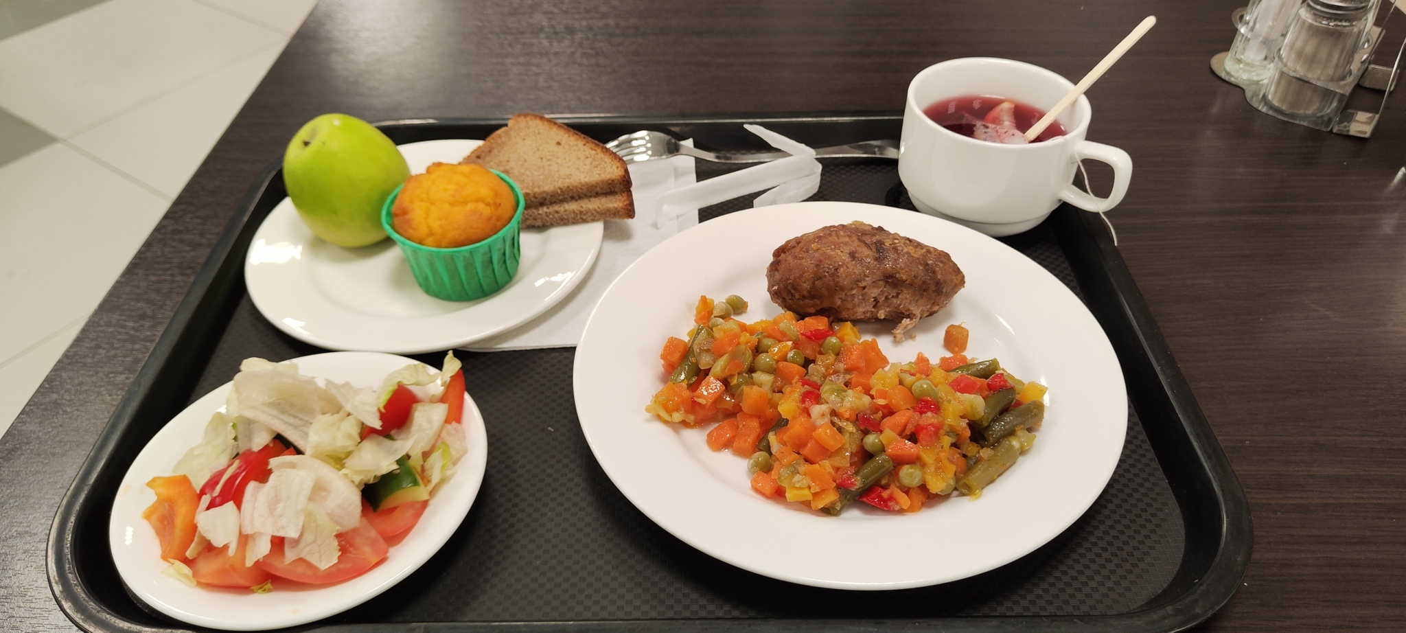На микроавтобусе доехал до гостиницы, там нас зарегистрировали, дали ужин, на выбор несколько блюд.