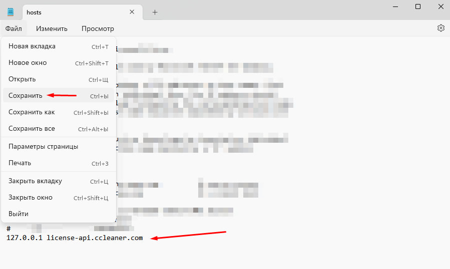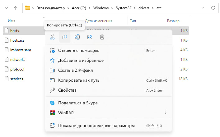 7. Сохраняем и переносим "hosts".