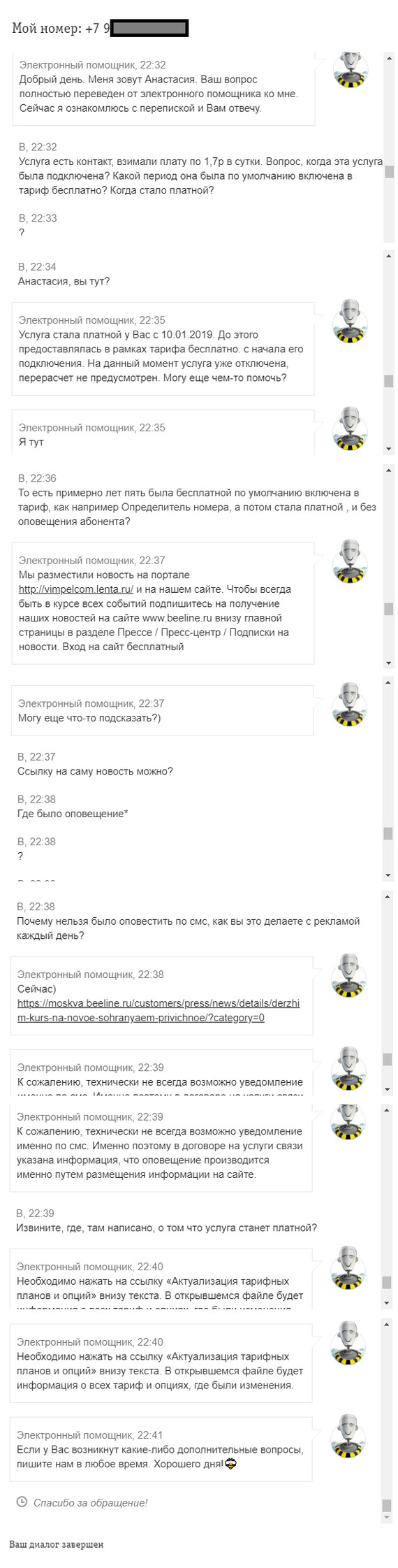 Пока искал новость на сайте о том что услуга станет платной, Вячеслав завершил диалог и вышел из чата.