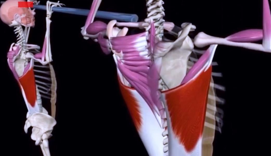 Это действительно важно и будет напрямую влиять в дальнейшем на качество твоих подтягиваний, развитие широкой спины, и конечно же, количество. Когда мы в нижней точке разводим, а затем сводим лопатки, то ещё работает и нижняя часть трапеции.