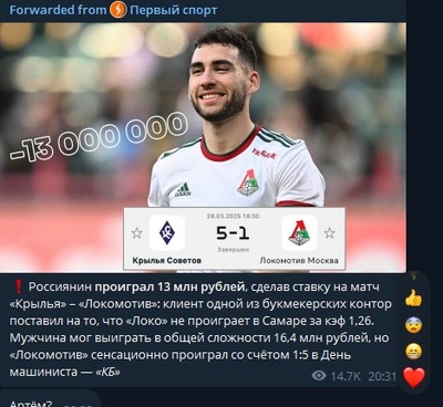А теперь про штрафы. Максимальный штраф для букмекерской конторы за нарушения — 1 миллион рублей. При годовой выручке всех компаний в 1,73 ТРИЛЛИОНА. Это как если бы тебя за превышение скорости оштрафовали на 3 копейки. https://www.consultant.ru/document/cons_doc_LAW_58968/542c1d...