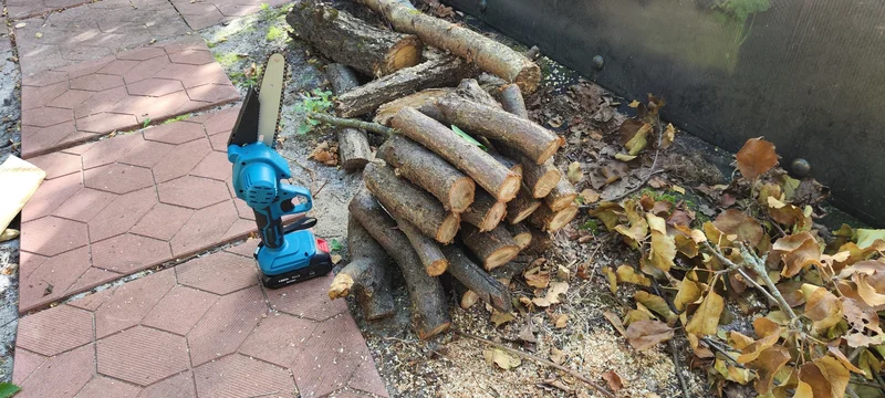 Интересная беспроводная мини цепная пила с 2мя аккумуляторами быстро справится с распилом мелких дров и веток. Стоит такой набор на данный момент около 2 700 руб. Ссылка на неё.