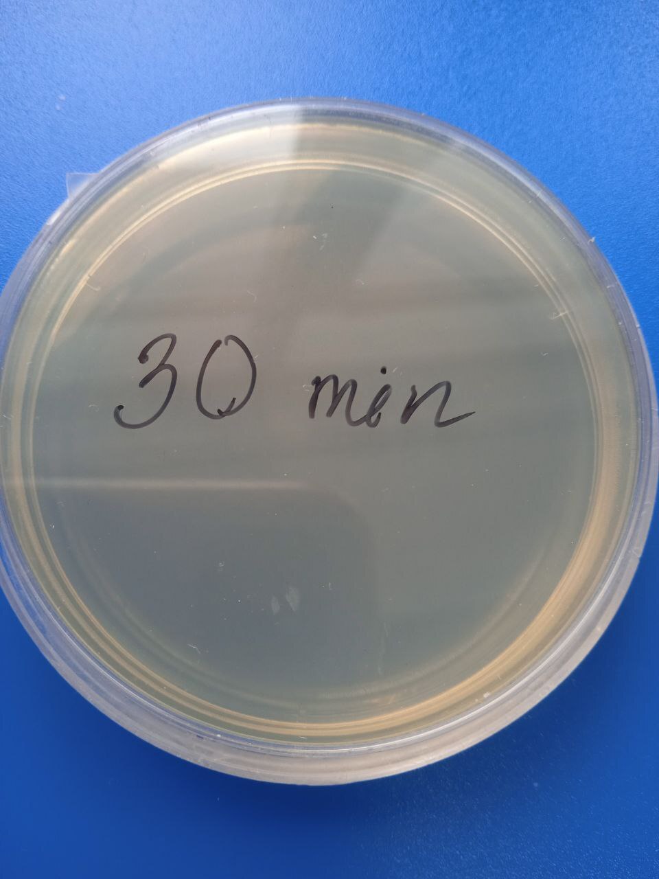 На самом деле я ожидала подобного результата, потому что стандартное время стерилизации ламинара после работы именно 30 минут. Укорачивать время стерилизации не рекомендуется, и данный эксперимент наглядно показывает, почему)