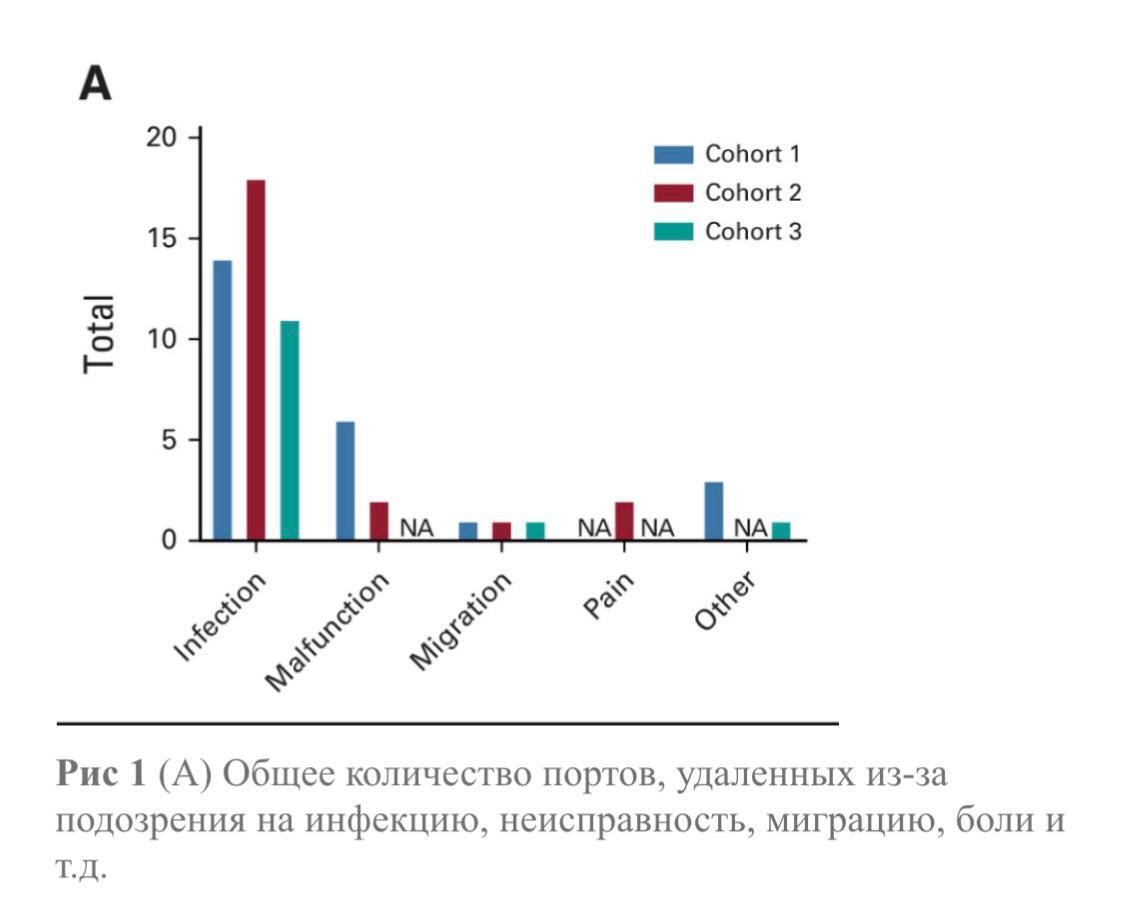 Рис 1 (A) Общее количество портов, удаленных из-за подозрения на инфекцию, неисправность, миграцию, боли и т.д.