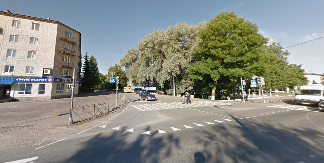 А это главный перекресток города, где Октябрьскую пересекает улица Революции: