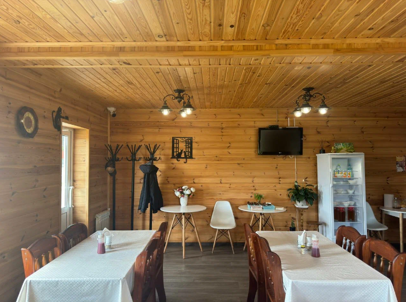 Домик справа - трапезная. Оценка 5.0, интерьер вот такой: