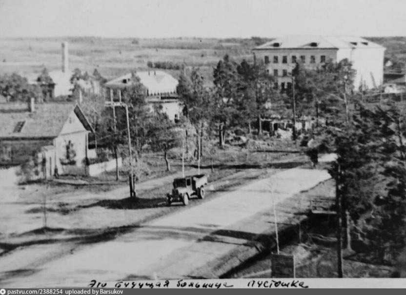 К 1913 году, то есть всего за 10 лет здесь появились два кирпичных завода, 7 кузниц, дегтярный завод, нефтяная мукомольная мельница, две пекарни, более 60 лавок, постоялый двор, парикмахерская, две чайные, закусочная, трактир, аптека, баня, гостиница. В 1925 году Пустошка получила статус города. Вот так в 1930-х выглядела главная улица Пустошки - Октябрьская:
