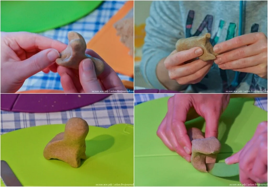 После того, как фигурки готовы, они должны немного обсохнуть. Затем их поместят в духовку, после которой станут настоящими поморскими козулями, очень твердыми и похожими на глиняные фигурки.