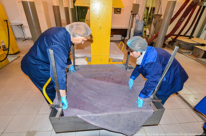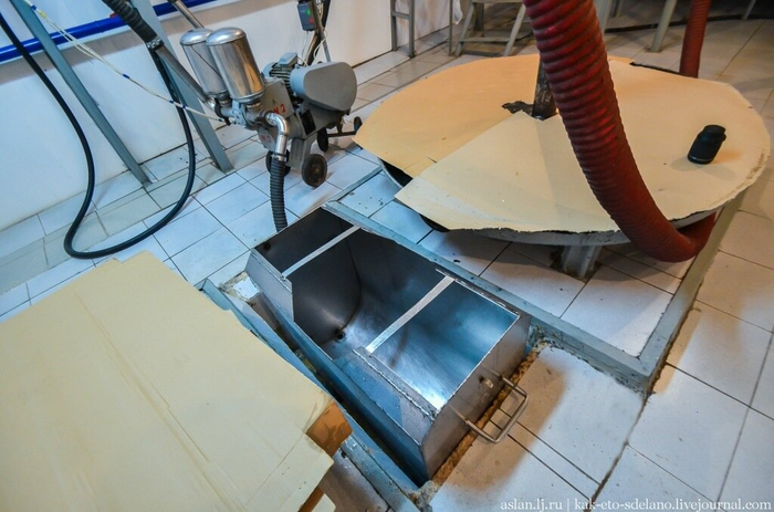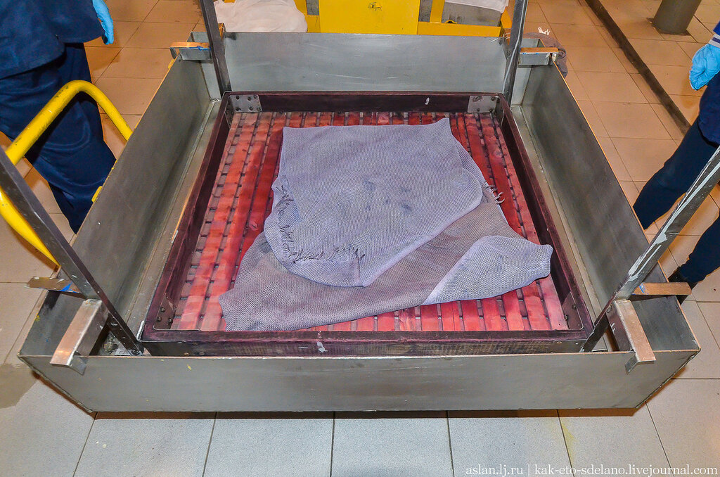 В соседнем помещении обрабатываются серпянки и моют деревянные решетки.