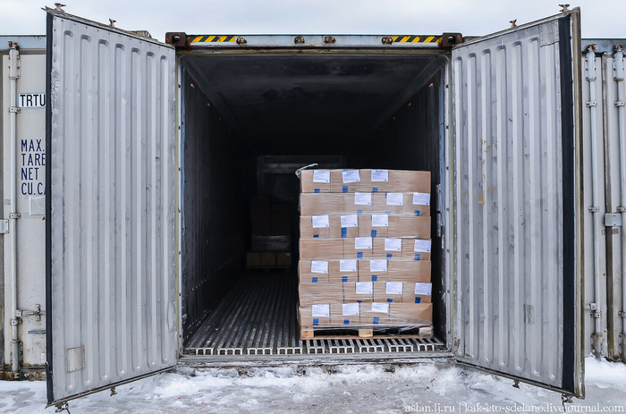 рефрижераторы. Здесь хранится поставляемая на завод ягода, которая тщательно проверяется, и из которой удаляются поврежденные плоды.