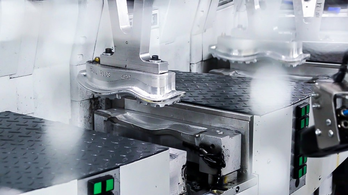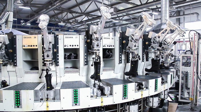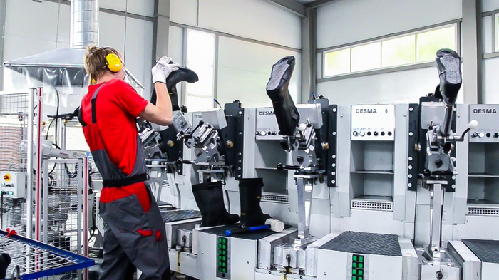 Такой агрегат и пресс-формы позволяют выпускать спецобувь с подошвой из комбинаций различных материалов, таких как полиуретан, термопластичный полиуретан и нитрил.