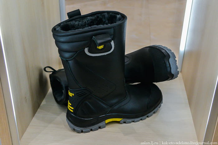 Отдельно расскажу про метку, которая вставлется в каждую пару под стельку, она носит информацию о том, когда и какими специалистами была сделана эта спецобувь. Это обязательный элемент подобной рабочей обуви.